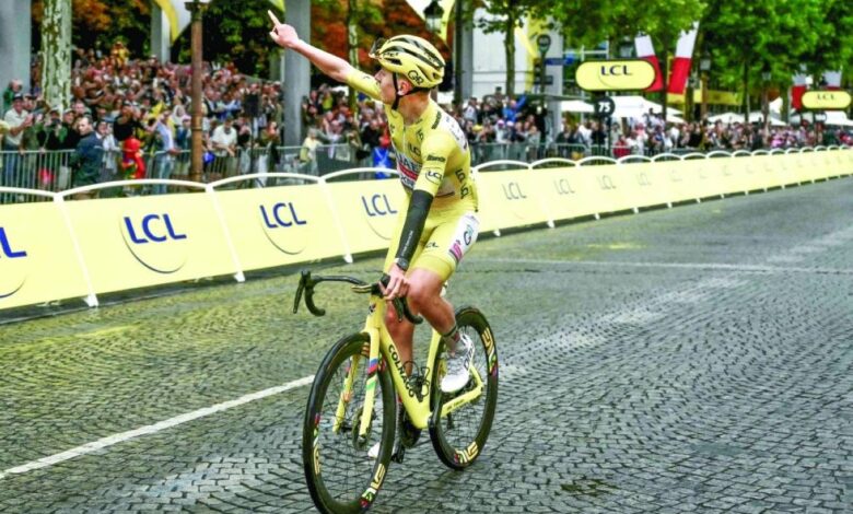 توج السلوفيني تادي بوغاتشار (فريق الإمارات) بلقب طواف فرنسا للدراجات الهوائية للمرة الثانية تواليا والرابعة في مسيرته، بعد إنهائه النسخة الـ112 في الصدارة عقب المرحلة الحادية والعشرين الأخيرة التي أحرزها البلجيكي فاوت فان أيرت تحت الأمطار الأحد في جادة الشانزيليزيه.